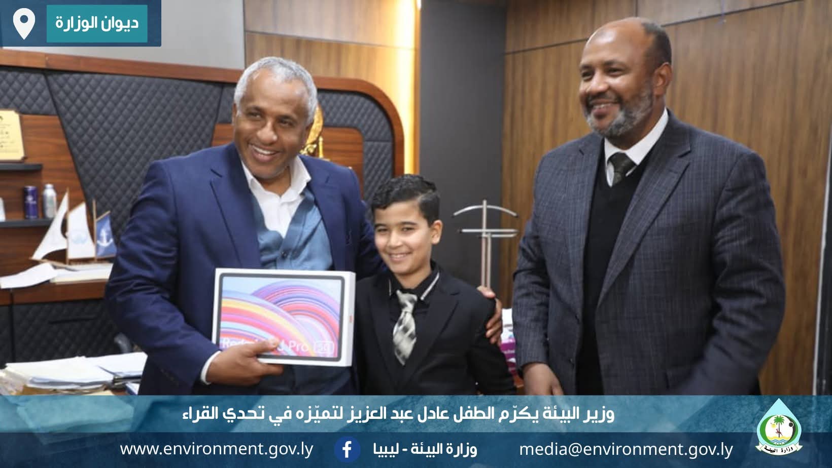 وزير البيئة يكرم الطفل ( عادل عبدالعزيز ) لتميزه في تحدي القراءة
