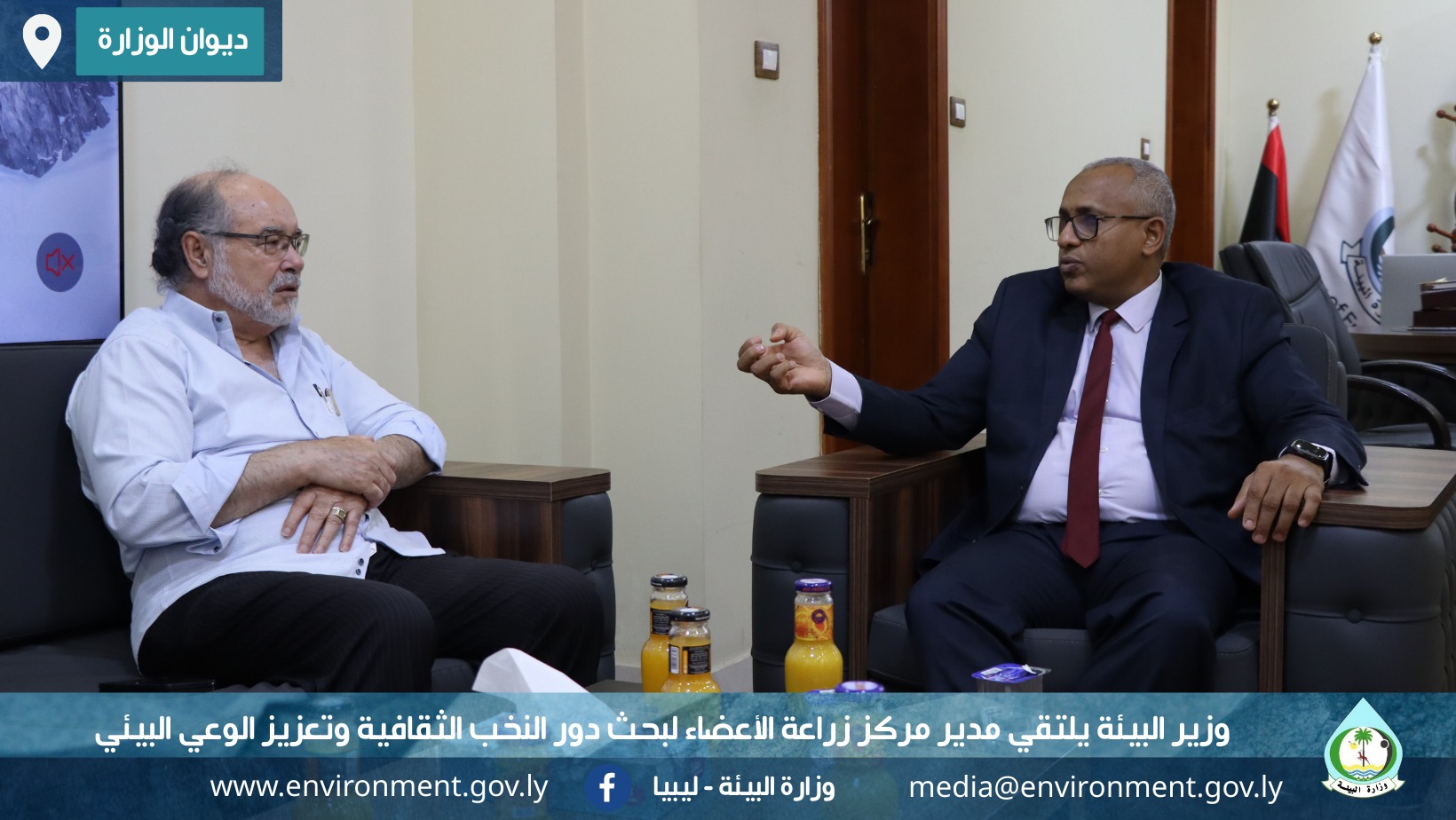 عقد معالي وزير البيئة، الدكتور إبراهيم العربي منير، مساء اليوم اجتماعًا مع البروفيسور احتيوش فرج احتيوش، رئيس الهيئة الوطنية العليا لزراعة الأعضاء، والأمين السابق للهيئة العامة للبيئة.